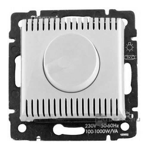 Светорегулятор (диммер) 100-1000 Вт Valena, поворотно-нажимной, с возможностью управления с 2-х мест, лампы накаливания и галогенные 220В (R), лампы с индукционным (обмоточным) трансформ.(L), цвет - белый