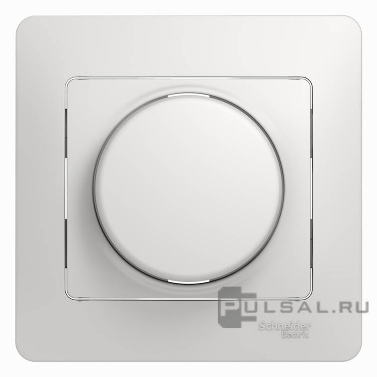 Светорегулятор (диммер) 40-600 Вт с рамкой Glossa, поворотно-нажимной, с возможностью управления с 2-х мест, лампы накаливания и галогенные 220В (R), лампы с индукционным (обмоточным) трансформ.(L), лампы с электронным (емкостным) трансформ.(C), цвет - белый