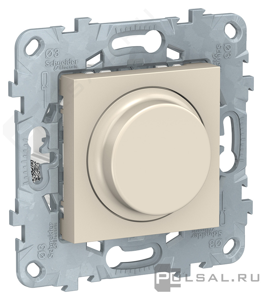 Светорегулятор (диммер) 5-200 Вт, для LED 5-100 ВА Unica New Pure, Unica New Studio, поворотно-нажимной, с возможностью управления с 2-х мест, лампы накаливания и галогенные 220В (R), лампы с индукционным (обмоточным) трансформ.(L), лампы с электронным (емкостным) трансформ.(C), диммируемые лампы LED 220В (LEDi тип L), диммируемые лампы LED 220В (LEDi тип C), цвет - бежевый
