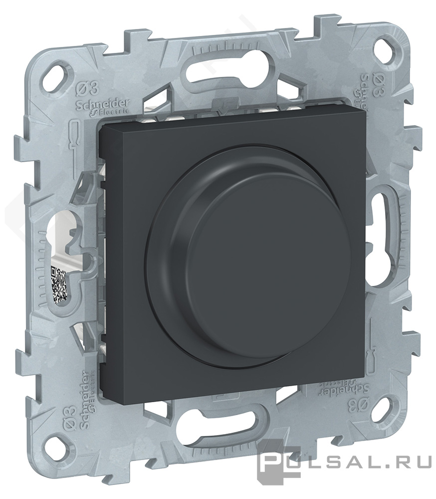 Светорегулятор (диммер) 5-200 Вт, для LED 5-100 ВА Unica New Pure, Unica New Studio, поворотно-нажимной, с возможностью управления с 2-х мест, лампы накаливания и галогенные 220В (R), лампы с индукционным (обмоточным) трансформ.(L), лампы с электронным (емкостным) трансформ.(C), диммируемые лампы LED 220В (LEDi тип L), диммируемые лампы LED 220В (LEDi тип C), цвет - антрацит