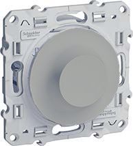 Светорегулятор (диммер) 9-100 Вт/ВА Odace, поворотно-нажимной, с возможностью управления с 2-х мест, лампы накаливания и галогенные 220В (R), лампы с индукционным (обмоточным) трансформ.(L), цвет - алюминий