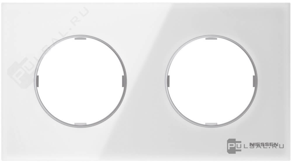Рамка SKYmoon, 2 поста, цвет - белое стекло, стекло