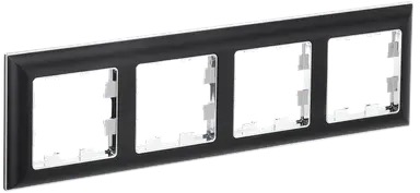 Рамка BRITE, 4 поста, цвет - черный, хром, пластмасса