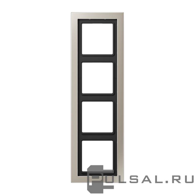 Рамка LS-design, 4 поста, цвет - нержавеющая сталь, металл