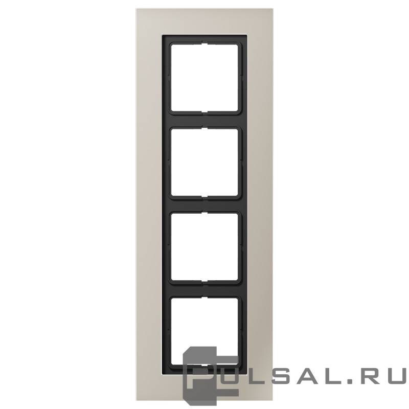 Рамка LS plus, 4 поста, цвет - нержавеющая сталь, металл