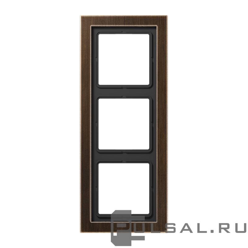 Рамка LS-design, 3 поста, цвет - латунь античная, металл