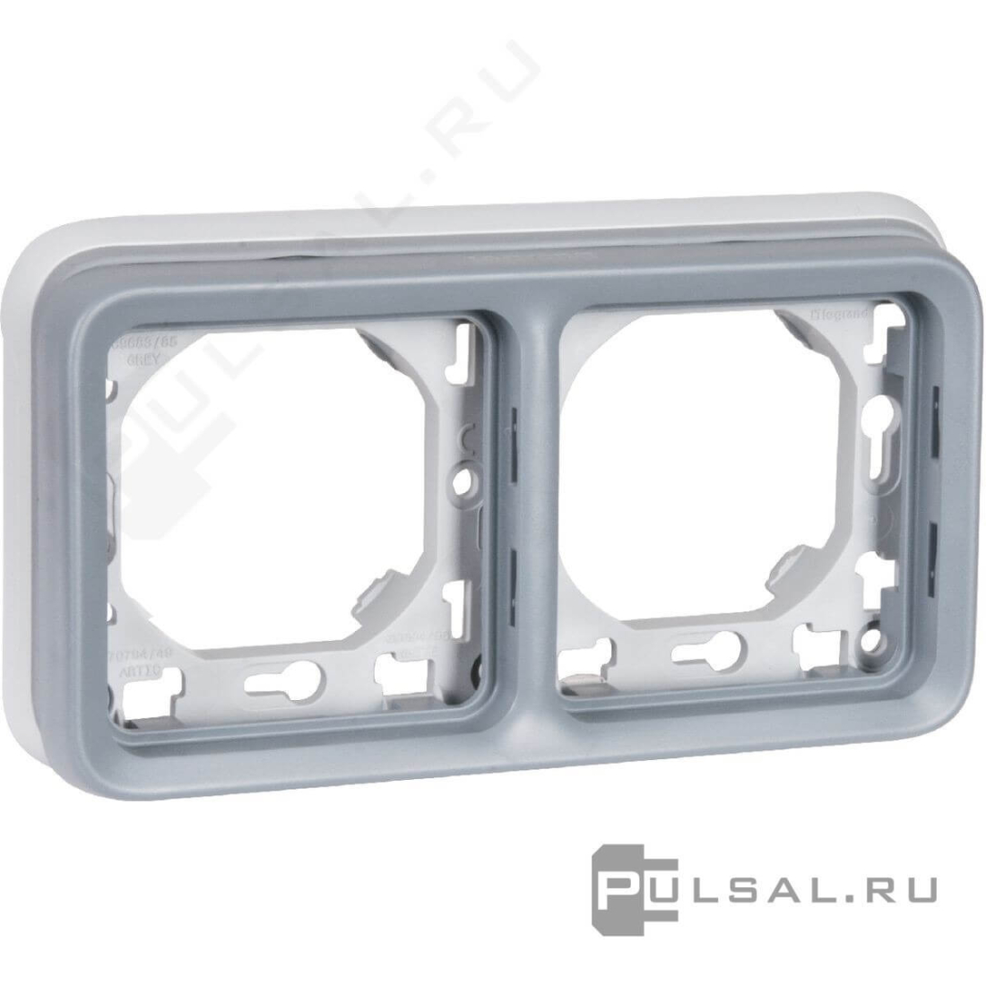 Рамка с суппортом Plexo, 2 поста, цвет - серый, пластмасса