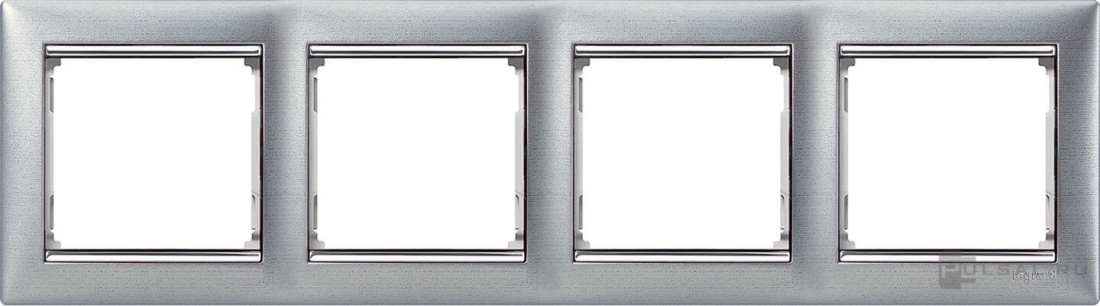 Рамка Valena, 4 поста, цвет - алюминий матовый / серебряный штрих, пластмасса