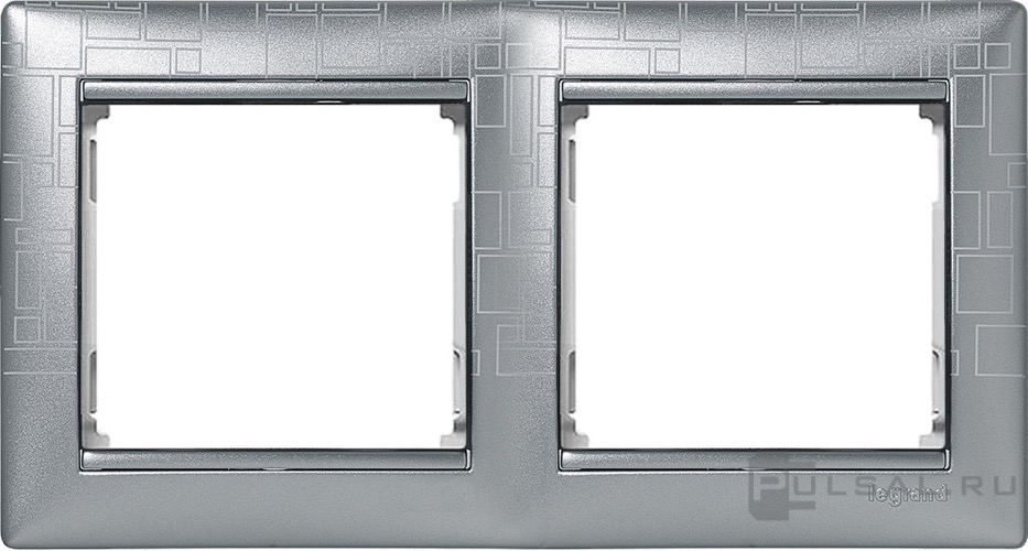 Рамка Valena, 2 поста, цвет - белый / серебряный штрих, пластмасса