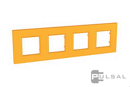 Рамка Unica Quadro, 4 поста, цвет - оранжевый, пластмасса