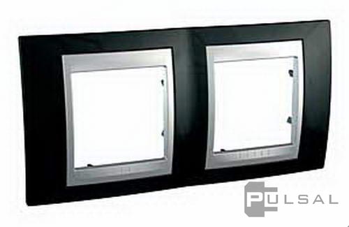 Рамка Unica Top, 2 поста, цвет - родий, алюминий, металл