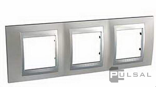 Рамка Unica Top, 3 поста, цвет - никель, алюминий, металл
