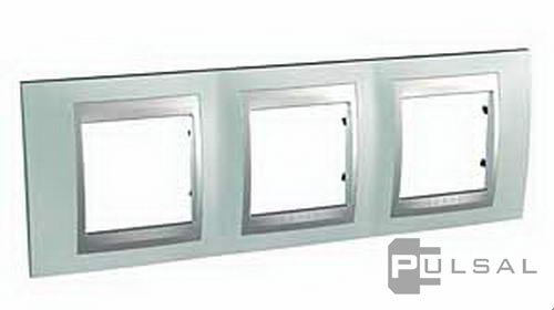 Рамка Unica Top, 3 поста, цвет - флюорит, алюминий, металл