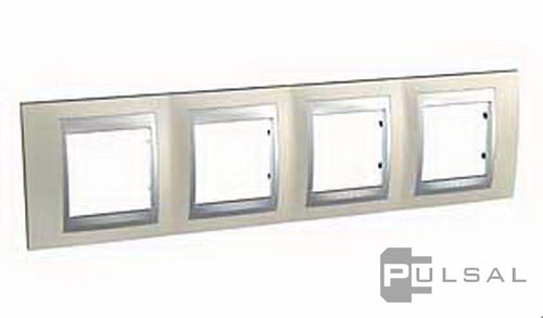 Рамка Unica Top, 4 поста, цвет - опал, алюминий, металл