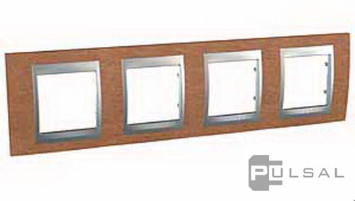 Рамка Unica Top, 4 поста, цвет - вишня, алюминий, дерево