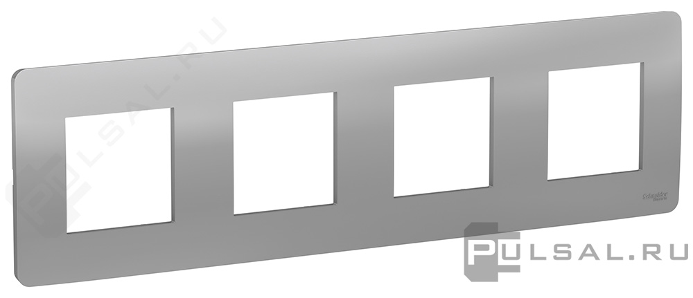 Рамка Mono Unica New Studio, Unica New Studio modular, 4 поста, цвет - алюминий, алюминий, пластмасса