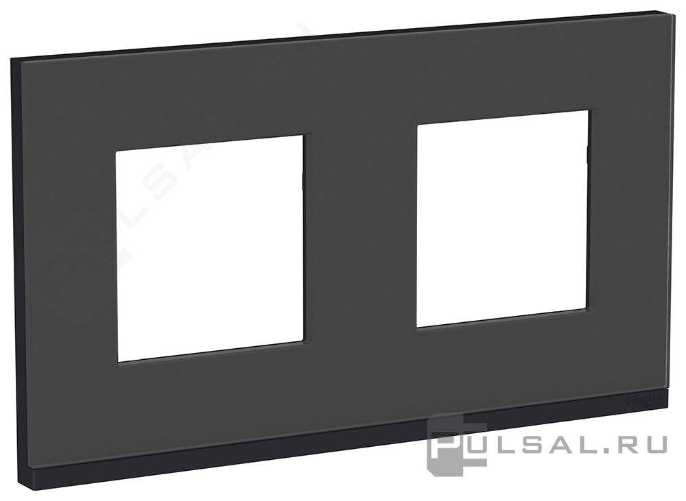 Рамка Unica New Pure, 2 поста, цвет - черное стекло, антрацит, стекло