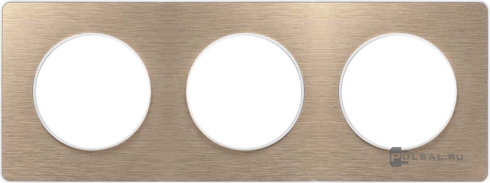 Рамка Odace, 3 поста, цвет - бронзовый, белый, металл