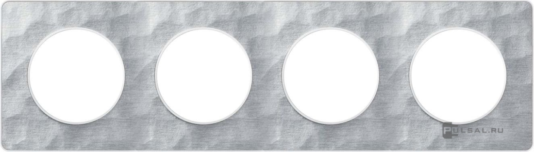 Рамка Odace, 4 поста, цвет - алюминий martele, белый, металл