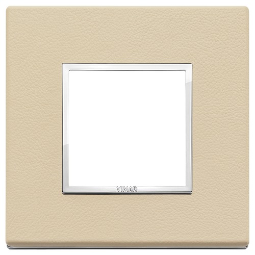 Рамка Eikon EVO, 1 пост, цвет - кожа кремовая, хром, кожа