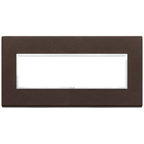 Рамка Eikon EVO, 7 модулей, цвет - кожа табак, хром, кожа