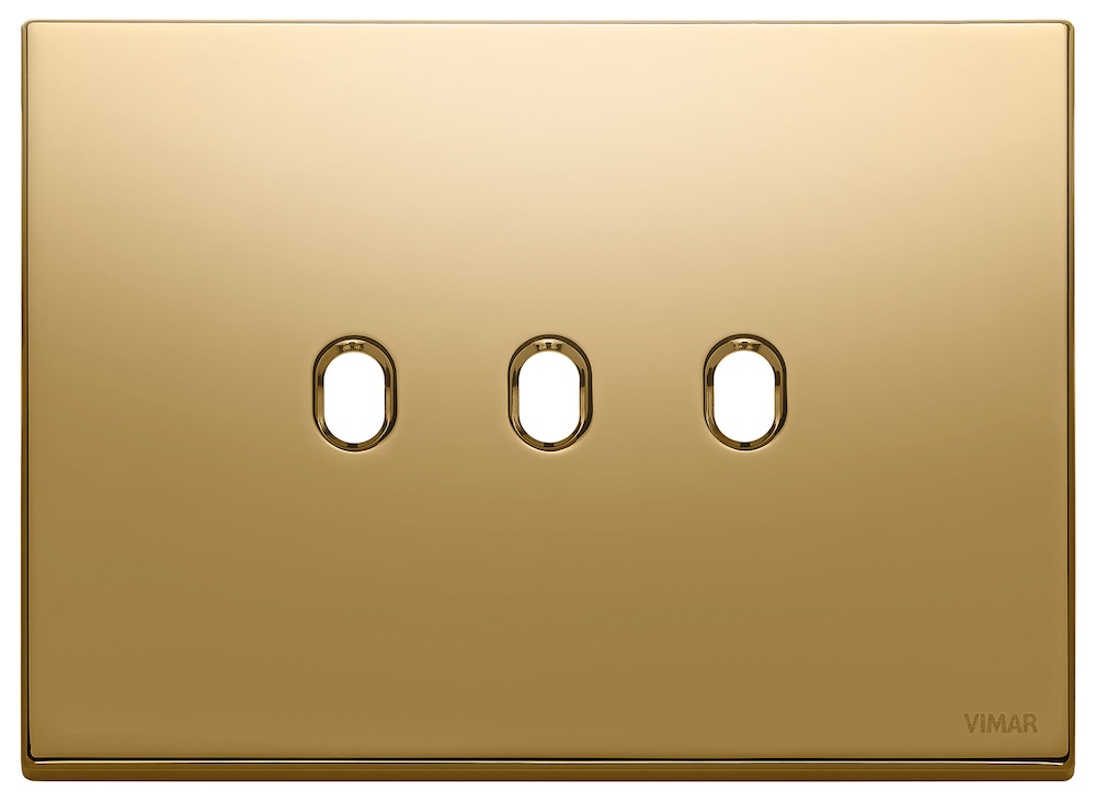 Рамка-накладка для тумблерного выключателя, на 2 механизма Eikon EXE Vintage, 3 модуля, цвет - золото, металл