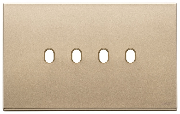Рамка-накладка для тумблерного выключателя, на 4 механизма Eikon EXE Vintage, 4 модуля, цвет - золото матовое, металл