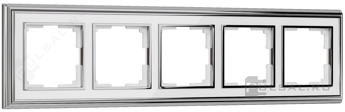 Рамкa Palacio, 5 постов, цвет - белый, хром, белый, металл