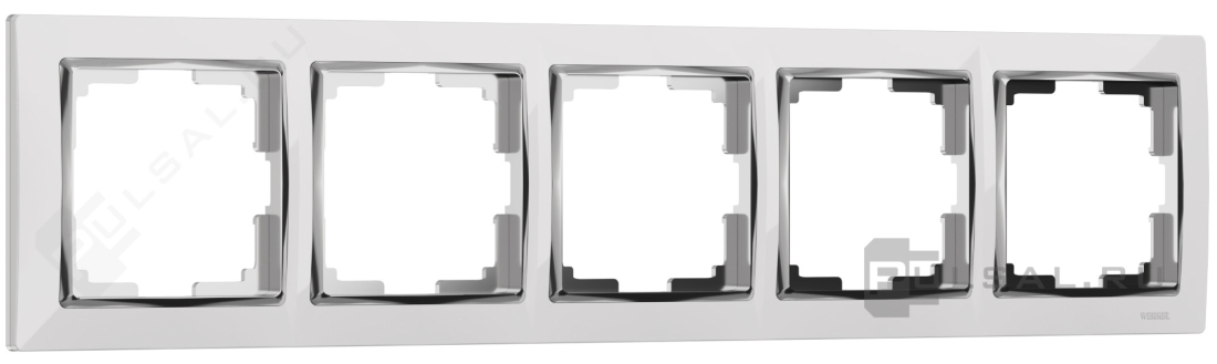 Рамкa Snabb, 5 постов, цвет - белый, хром, пластмасса