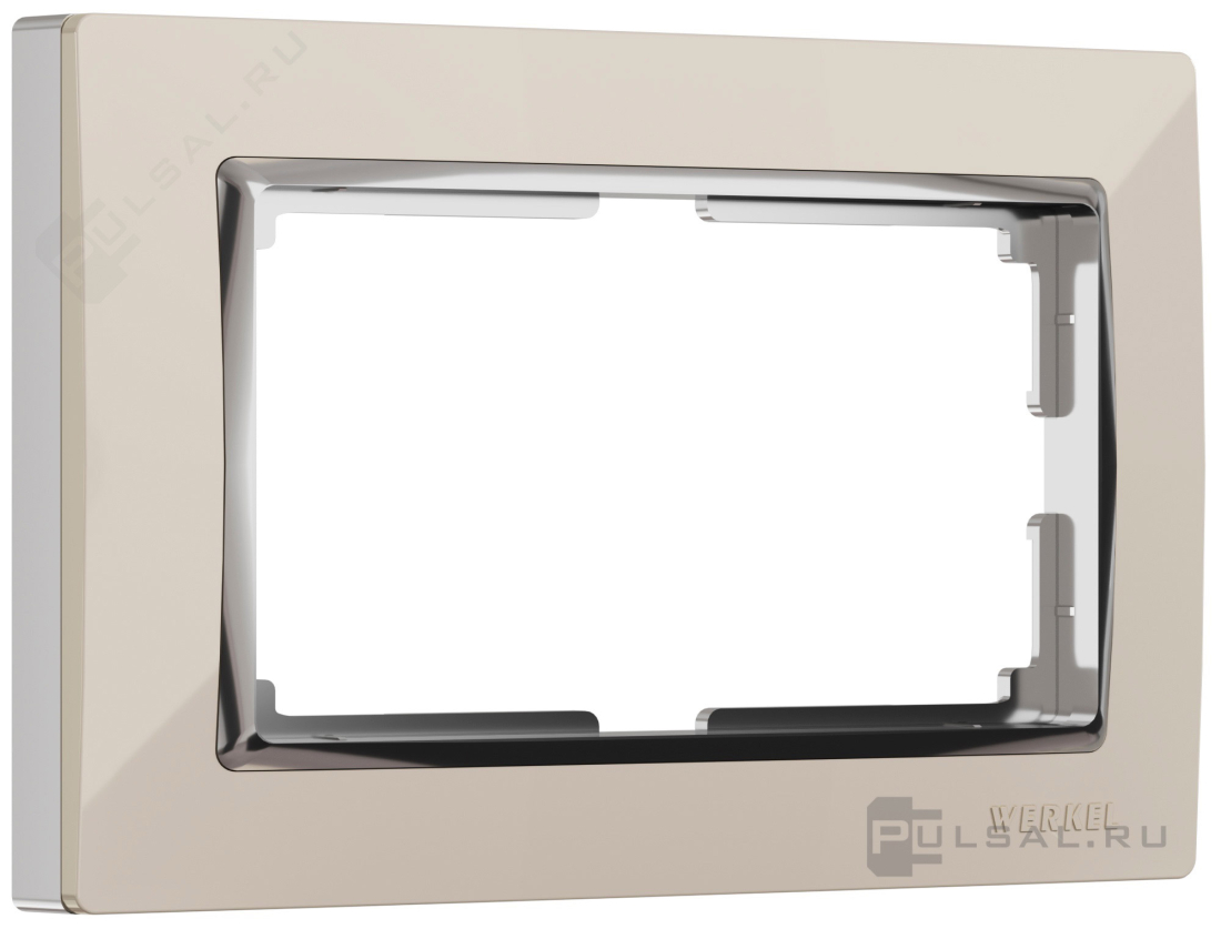 Рамка для двойной розетки Snabb, 2 поста без перегородки, цвет - слоновая кость, хром, пластмасса