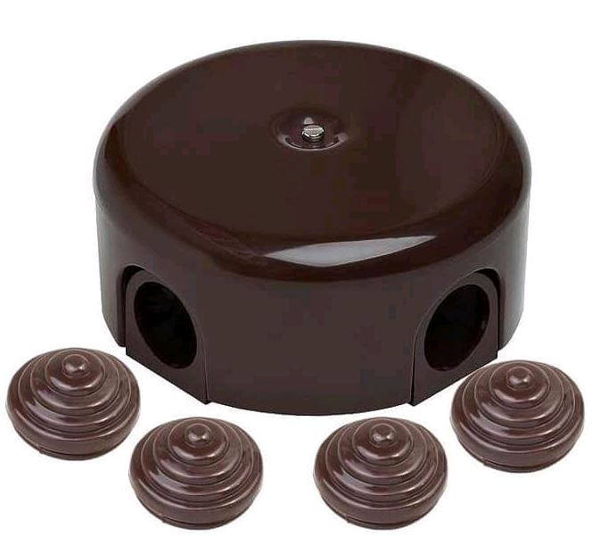 Распределительная коробка диам.78 мм (4 кабельных ввода в компл.) Лизетта, для полых стен и гипрока, для сплошных стен, цвет - коричневый