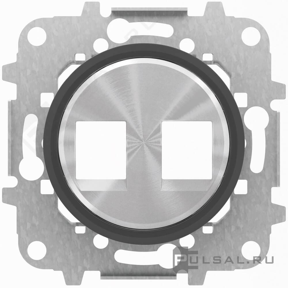 Накладка TV-R розетки, кольцо "чёрное стекло" SKYmoon, телевизионная (TV), радио (R), двойная, цвет - нержавеющая сталь, черное стекло