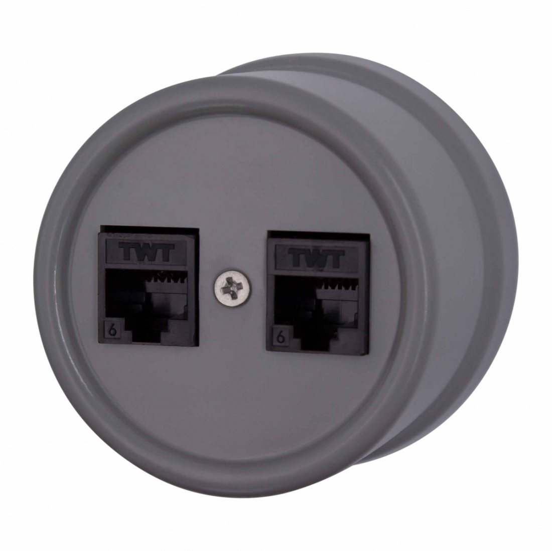 Розетка компьютерная RJ45 Cat.5 (UTP) Лизетта, двойная, цвет - титан