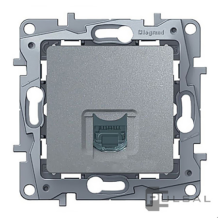Розетка телефонная RJ11 Etika, одинарная, цвет - алюминий