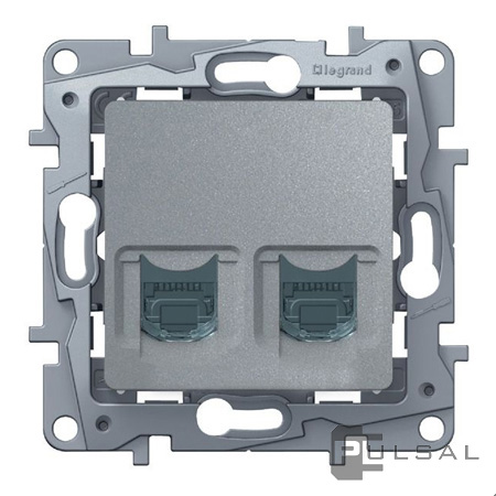 Розетка компьютерная RJ45 Cat.5e (UTP) Etika, двойная, цвет - алюминий