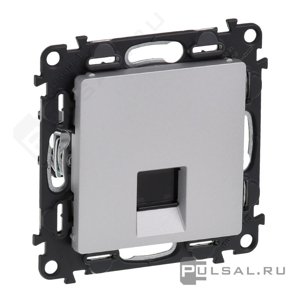 Розетка компьютерная RJ45 Кат.5е UTP Valena Life, одинарная, цвет - алюминий