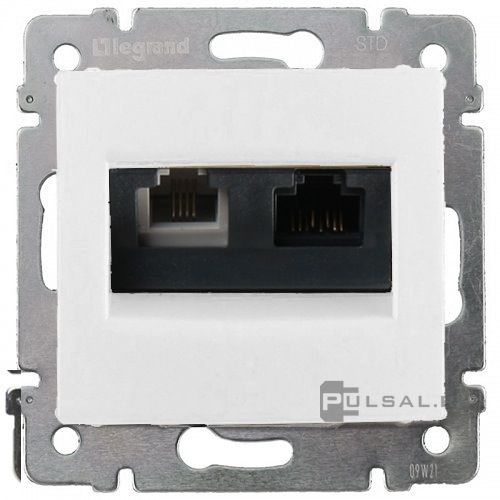 Розетка телефонная RJ11 + компьютерная RJ45 Cat.6 (UTP) без монтажных лапок Valena, двойная, цвет - белый