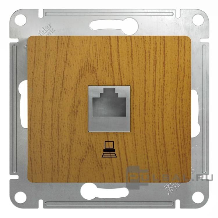 Розетка компьютерная RJ45 Cat.5e (UTP) Glossa, одинарная, цвет - дуб