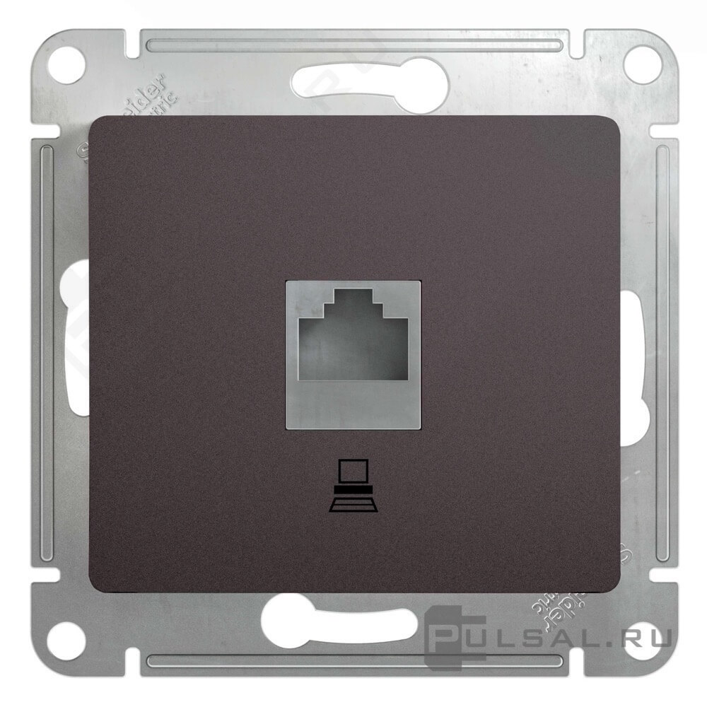 Розетка компьютерная RJ45 Cat.5e (UTP) Glossa, одинарная, цвет - графит