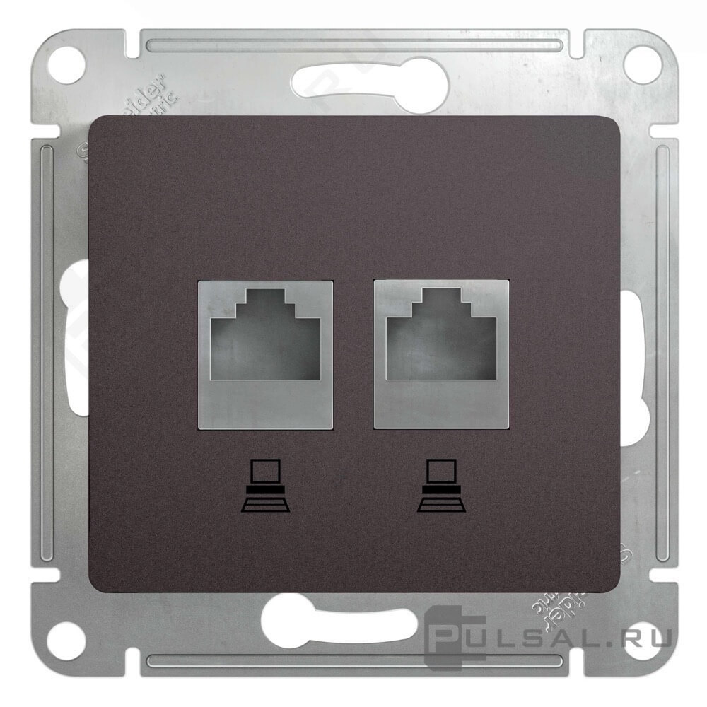 Розетка компьютерная 2 x RJ45 Cat.5e (UTP) Glossa, двойная, цвет - графит