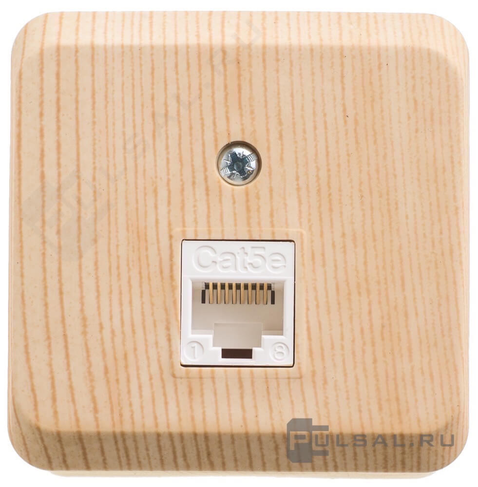 Этюд, со шторками, с заземлением, одинарная, винтовые клеммы, цвет - сосна