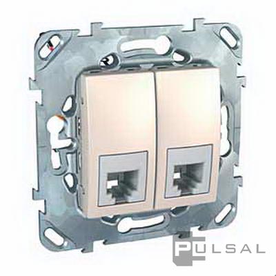 Розетка телефонная RJ11 Unica Базовая, Unica Хамелеон, Unica Quadro, двойная, цвет - бежевый