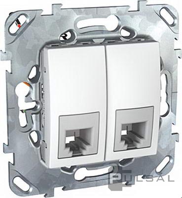 Розетка телефонная RJ12 Unica Базовая, Unica Хамелеон, Unica Quadro, двойная, цвет - белый