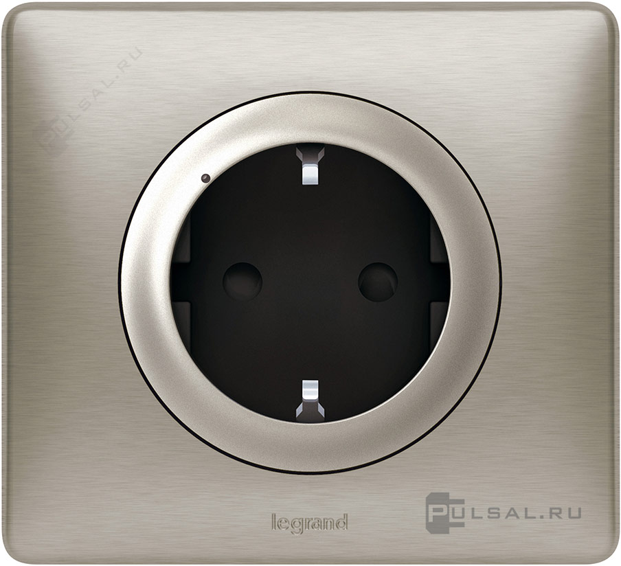 Умная розетка Netatmo, Celiane, со шторками, с заземлением, одинарная, безвинтовые клеммы, цвет - титан, титан металлик