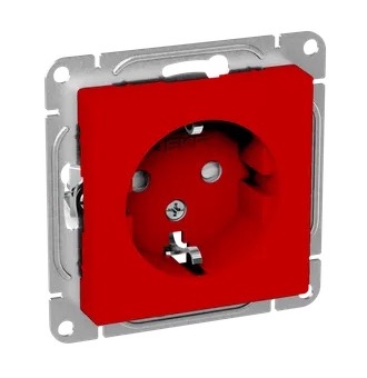 Розетка Epica, без шторок, с заземлением, одинарная, винтовые клеммы, цвет - красный