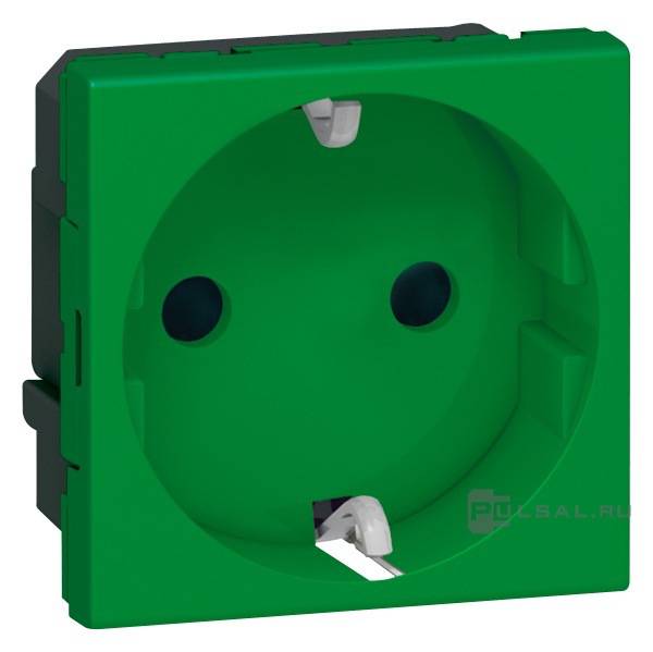 Розетка антибактериальная Mosaic, DLP, DLP floor, DLP IP 44, DLP IP 40, со шторками, с заземлением, одинарная, безвинтовые клеммы, цвет - зеленый