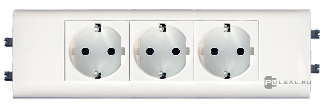 Розетка Mosaic, со шторками, с заземлением, тройная, безвинтовые клеммы, цвет - белый