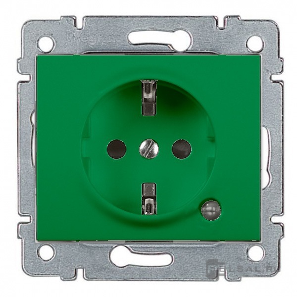 Розетка с индикацией Galea Life, со шторками, с заземлением, одинарная, винтовые клеммы, цвет - зеленый