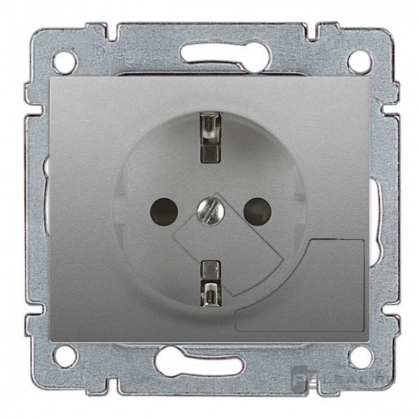 Розетка с выталкиванием вилки Galea Life, без шторок, с заземлением, одинарная, винтовые клеммы, цвет - алюминий