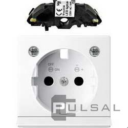 Накладка с модулем подсветки M-Smart, M-Plan, M-Elegance, M-Pure, M-Pure Decor, со шторками, с заземлением, одинарная, винтовые клеммы, безвинтовые клеммы, цвет - активный белый
